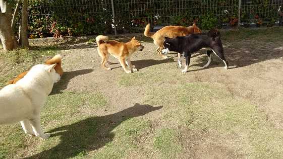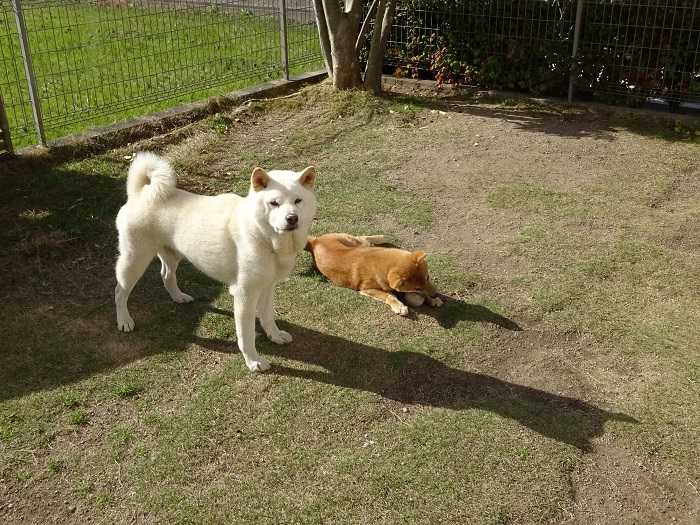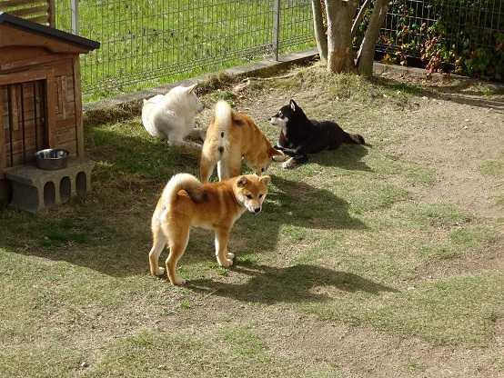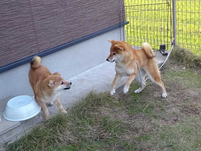 リッキーがやって来て二日目を迎えたこの日はちび太の庭遊びで一日がスタートしました。