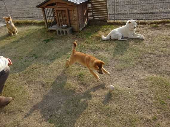 リュウのもとへ妻がボールを持ち出してボール遊びに誘い始めます。