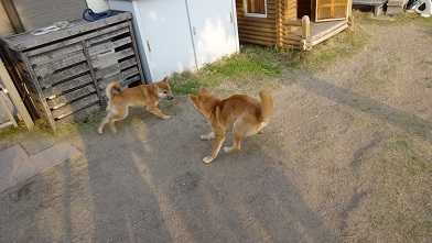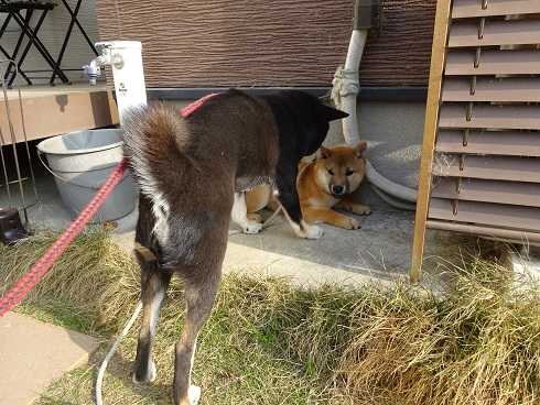 帰宅前の親子のツーショットとデッキにて佇むリュウを撮ってみました。
