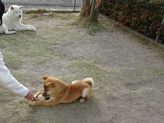 の前にタオルを持ち出して取り合いっこゲームの合図を送ります。(呆)