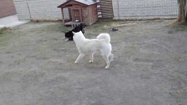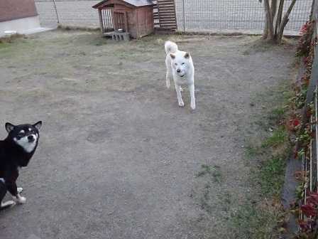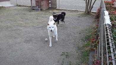 マリがボールをキープして見せていた最中、こちらへ鼻タッチへやって来たナツを一枚!
