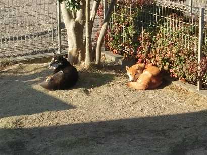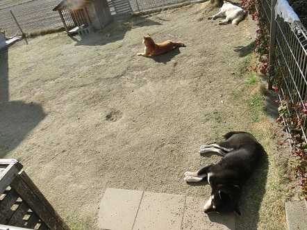 朝食を終えて庭でまったりタイムを満喫する4匹のもとに柔らかな冬の陽射しが少しずつ