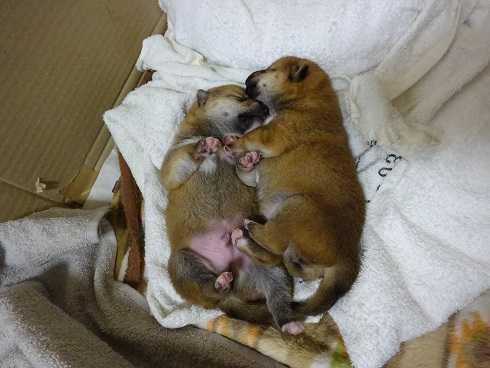 お母ちゃんが不在となった育児スペースへとやって来るとスヤスヤと寝息を立てて二匹で