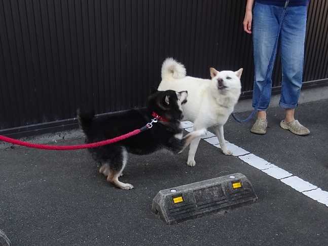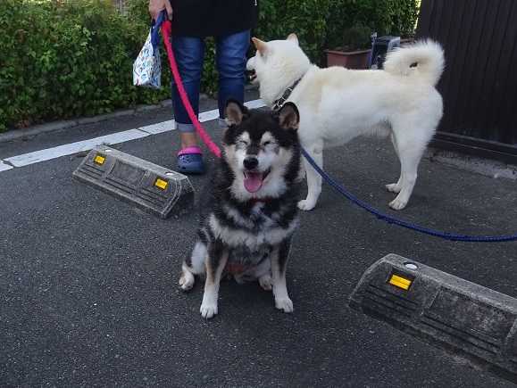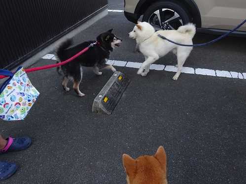 ナツ結コンビの朝の散歩から戻ると、ちょうどリンが遊びに来てくれました!(嬉)