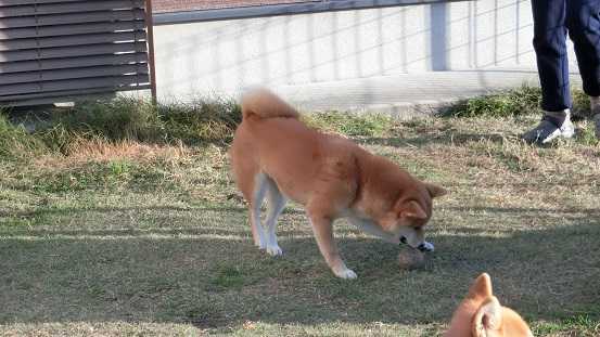 所用を終えて帰宅すると、庭ではボールを口にして妻から逃げる様に駆け回るナナの姿。