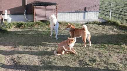 今年も麦の芽が顔を出し、少しずつ青みを帯び始めた田園風景を眺めながら4匹とコースを