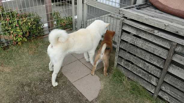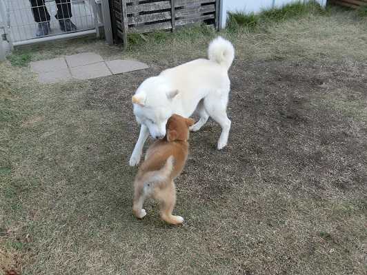 庭に入ると大好きなナツ爺に甘える様にじゃれ付く姿を見せていた武蔵。