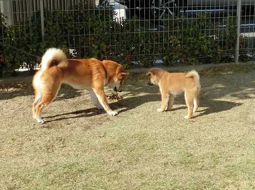 レッスンがひと段落したとろで再び武蔵が小枝を咥えてカイのもとへとやって来ました。