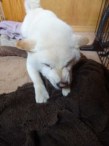 部屋へとやって来たこちらの姿を確認するなり、そそくさと毛布の確保に走る姿を見せる