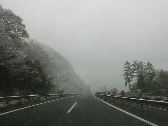 山深さが増すにつれて雨が雪へと変わり、あれよあれよという間に辺り一面の銀世界状態に窓の外が様変わりしていきます。(驚)