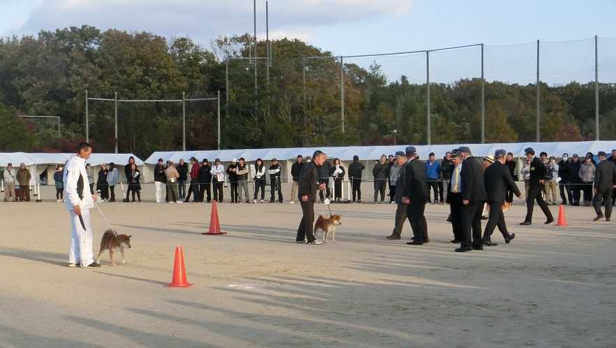 代表犬決定戦を制したのは、中型(紀州犬)クラスより山田乃結菜号(小髙石山田犬舎)、中型(四国犬)クラスより龍秋号(雲州米江荘)、小型(柴犬)雄部より来夢号(播磨雁南荘)、小型(柴犬)雌部より芦田のなつ号(福山芦田荘)でした。