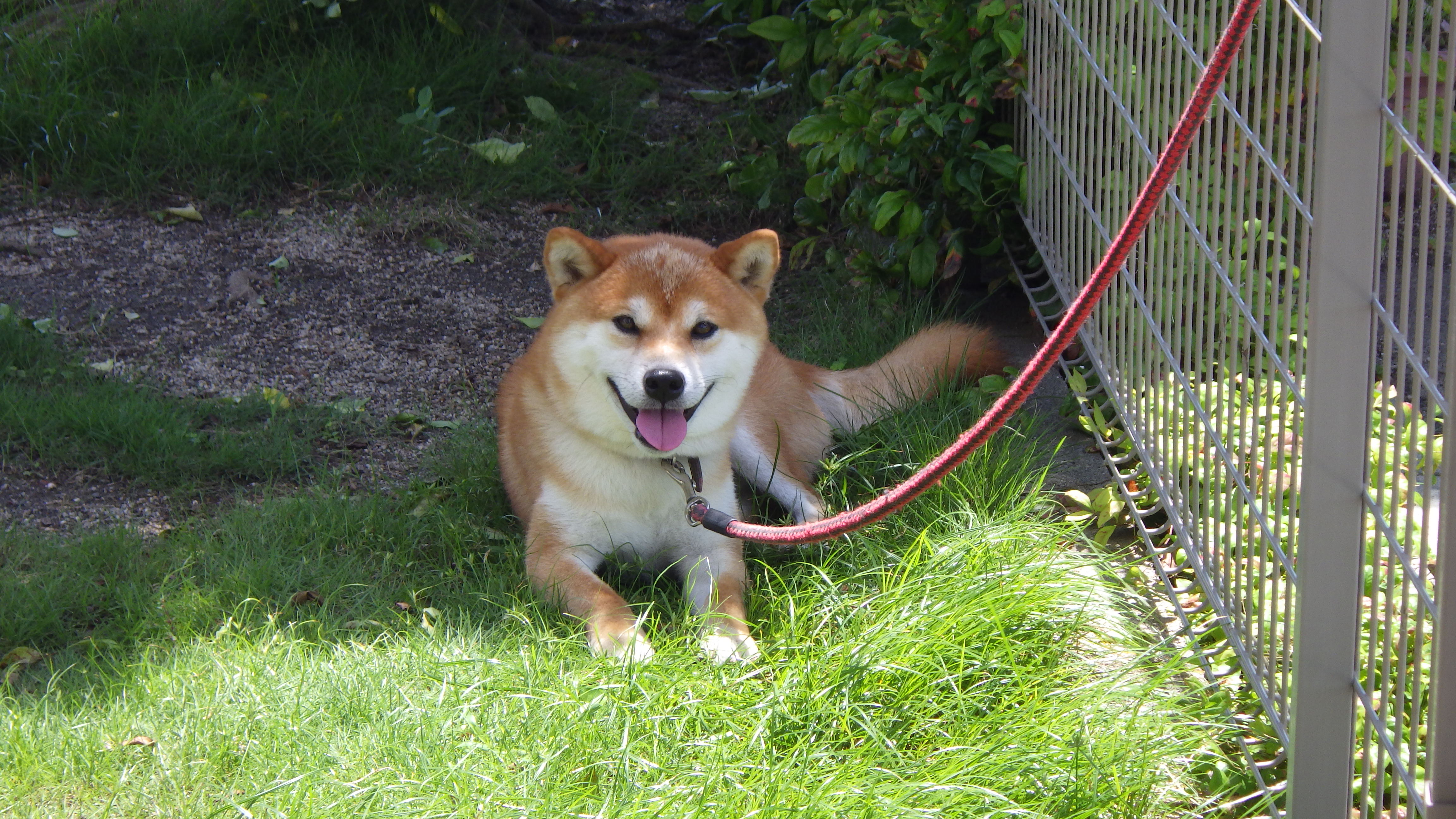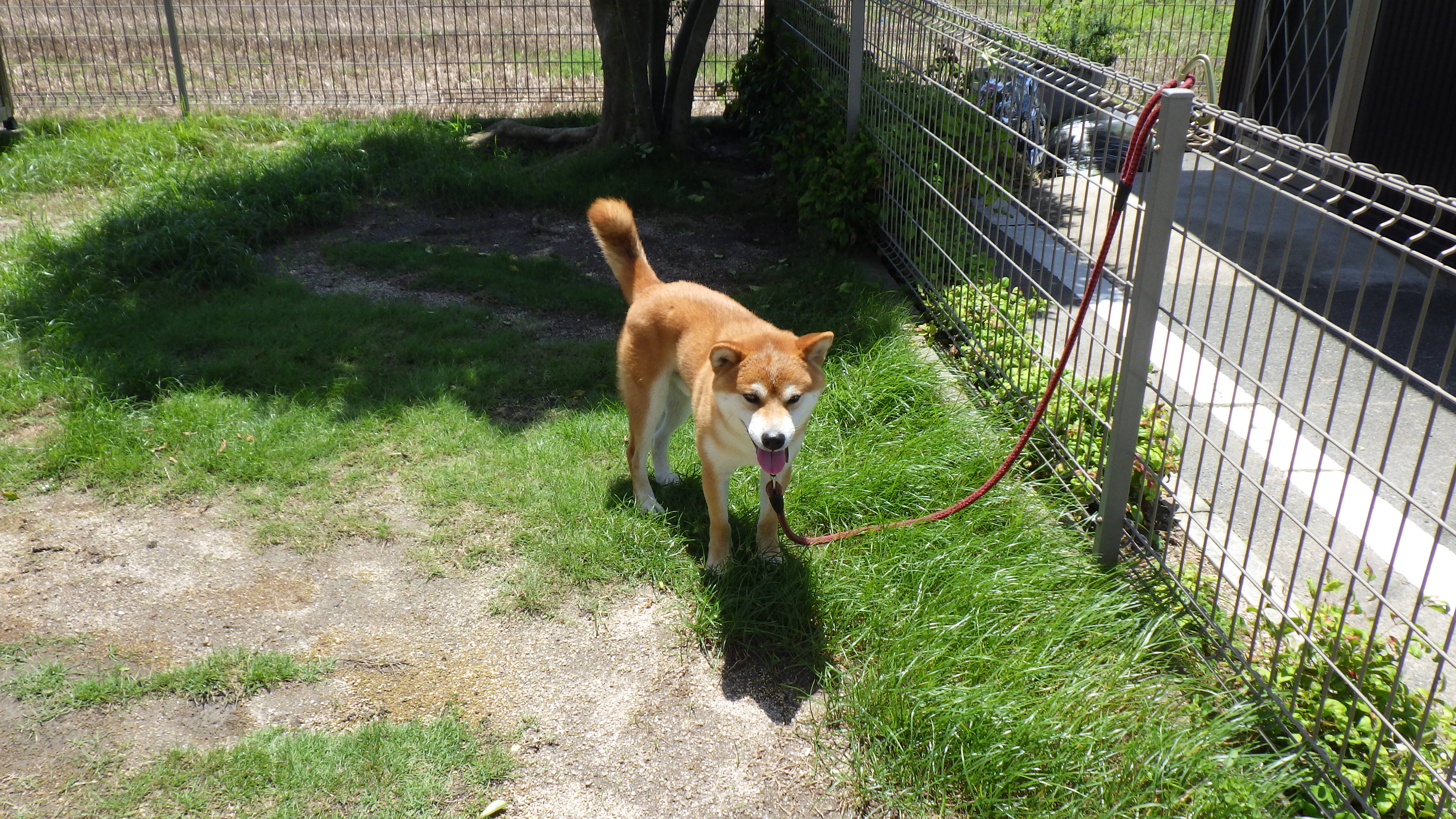 庭の外に繋留していましたが、快適なスペースを求めて、フェンスを飛び越え風通しの良い木陰にて寛ぐ姿を見せていました。