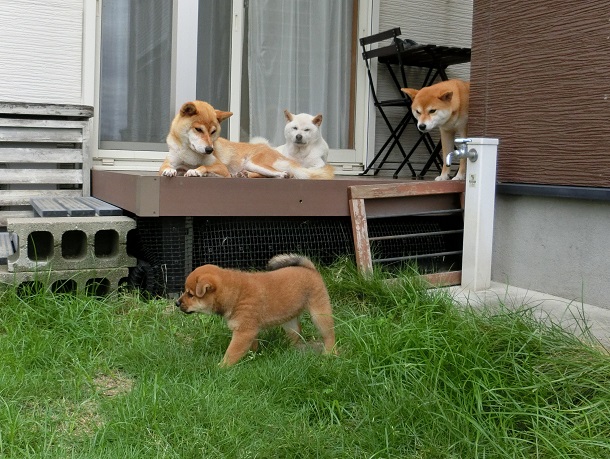 長老のナツを始めとする面々が2匹のちびたんを歓迎し、その相手を務め始めたと思ったのも束の間、この日もまたリッキーに子ども達の守役を委ねる様にデッキに上がると、再び庭番を務める傍ら一定の距離感を保ちつつ子ども達の様子を見守る姿を見せていたナツ、結、そしてナナ。