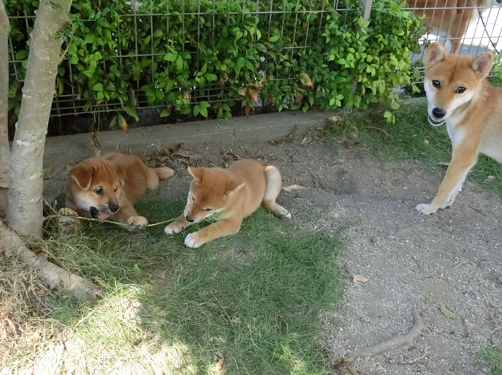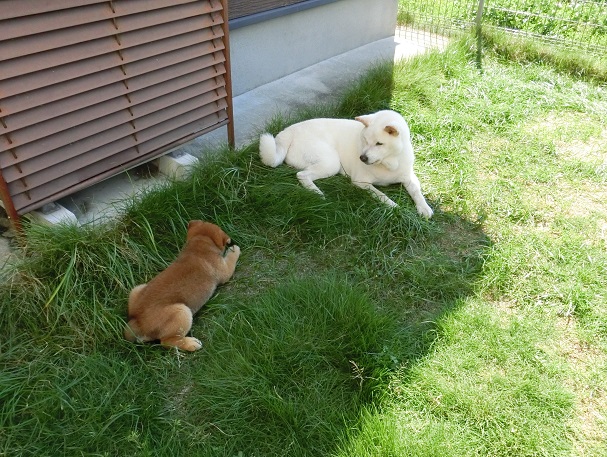 「大爺ちゃん、何やってるの?ボクも仲間に入れて~♪」って感じで適度な間合いを取りつつ、遊びの輪に入りた気な様子のちび太。
