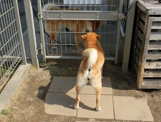 カイのロードワークを終えて帰宅すると、既に朝食を済ませ庭で寛いでいたナツが出迎えにやって来ます。