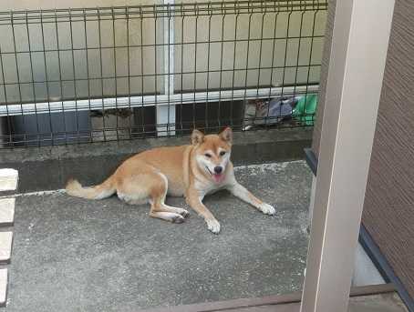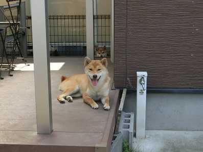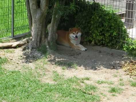 こちらは昼近くになるとできる木陰スペースにて寛ぐカイ。