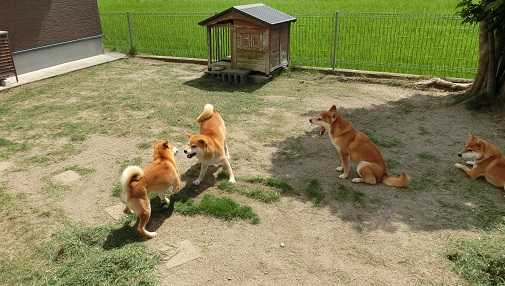 こちらは作業後、再び庭にやって来た我が家の面々の様子。