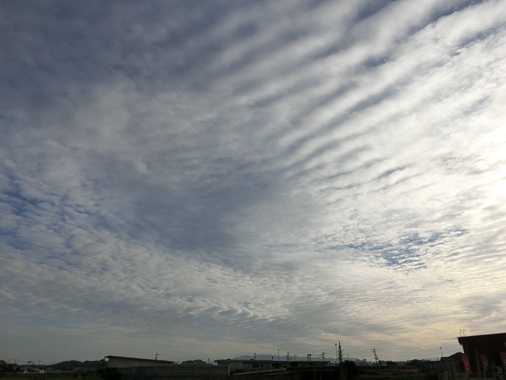 鯖雲が広がる朝の空を一枚。