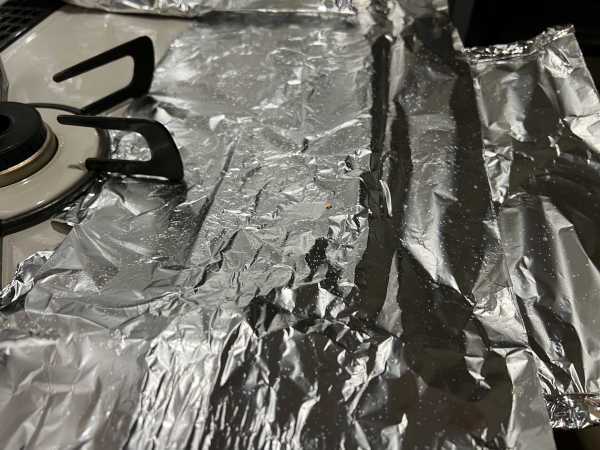 アルミホイルのおかげで、今日はコンロの掃除がだいぶ楽になりました
