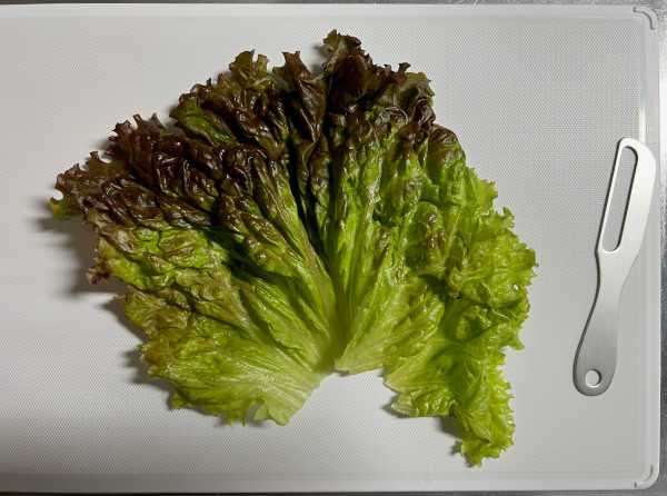 そしてもう1つの緑が、今日のサンドウィッチに使ったサニーレタスです。1枚の葉がデカい