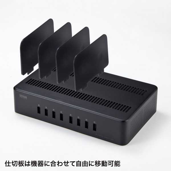 【クーポン配布中】USB充電スタンド スマホ タブレット 8ポート 合計19.2A 高耐久タイプ ブラック ACA-STN74BK サンワサプライ
