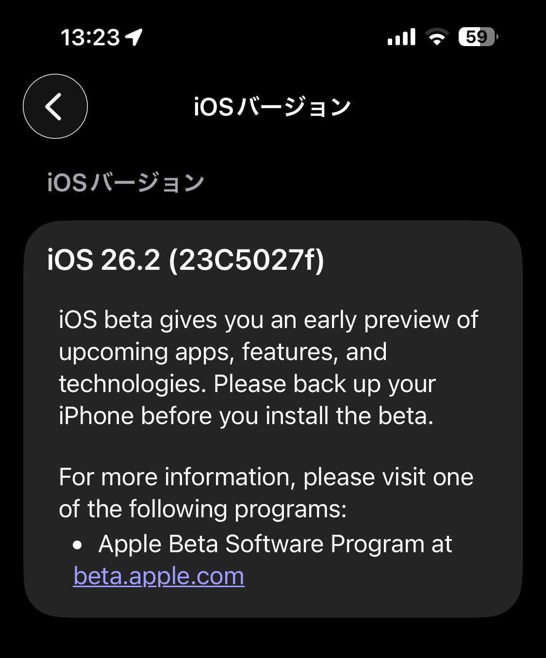 ビルド変化って、何か意味があるのか?と言われると返事に困りますがね〜。26.1正式版を使い続けることができず(好奇心に負けた)に26.2 Betaを使っているので、直近のものを挙げてみました。Beta版では新しいアプリや新機能が試せるという記述だけでしたね。