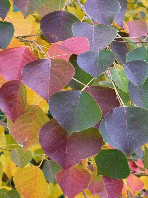 出かけの要件から帰る途中に、1本で彩りの良い灌木を見つけました:ナンキンハゼだと出てきました。緑、黄色、赤に加えて雨粒まである‼️豪華メンバーです。