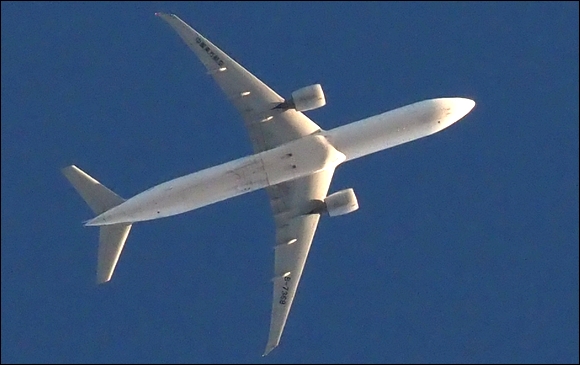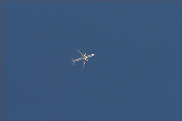 自分がこの季節に地上から、約1万mを飛ぶ飛行機を撮影しているということは、新幹線車両2両(25m×2)より少し長いものを約10㎞離れたところから撮影していることになる。(ボーイング787は、全長62.8 m、全幅 60.1 m)