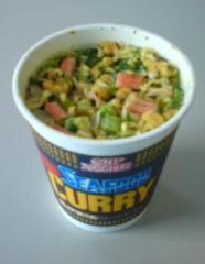 食べてみると、フツーのカレーヌードルと変わらないですが、具材がシーフードでした。