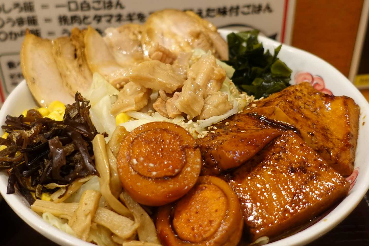 チャーシュー、コーン、きくらげ、メンマや