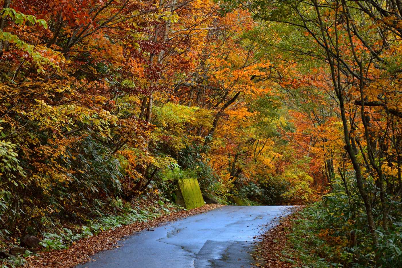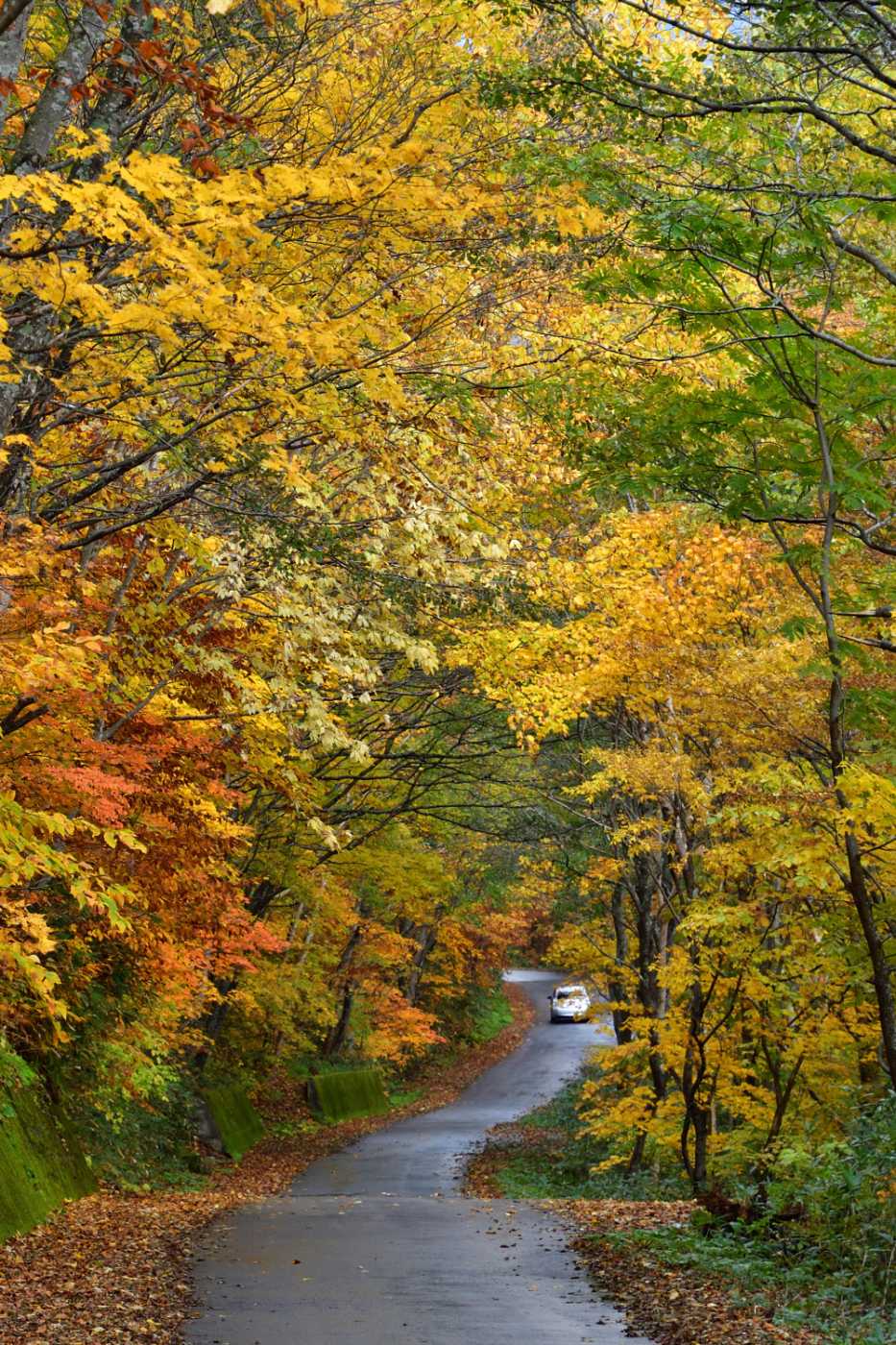 落ち葉で稀にスリップするのでゆっくり走ります。