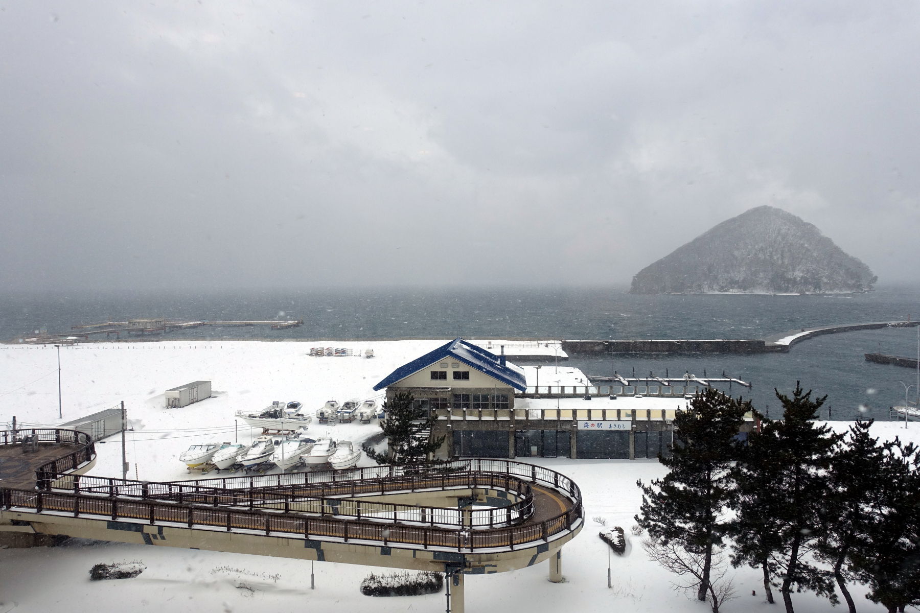 高いところから津軽海峡冬景色を眺めながら入る温泉は