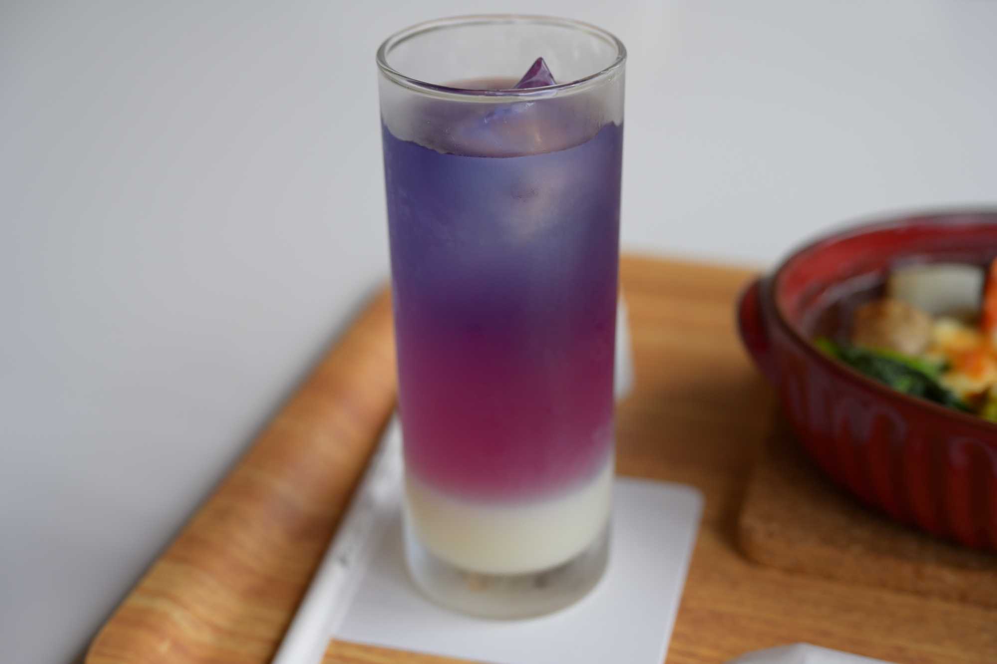 バタフライピーティとカルピスを使用したソフトドリンク。