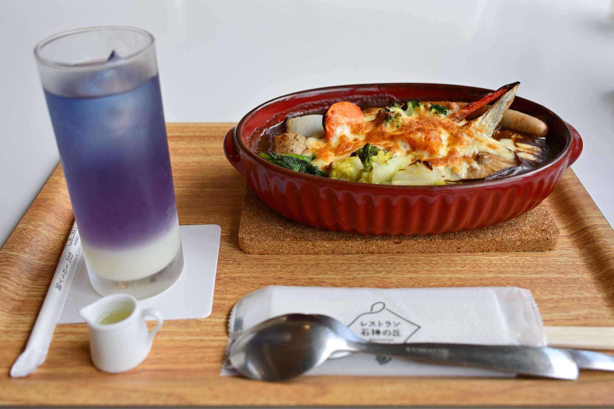 ここにレモン果汁を入れると真ん中が紅くなるという不思議なドリンク。