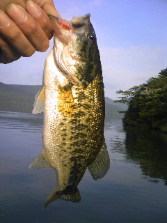 まずは、言い訳から・・・w帰宅後、すぐに寝ないと次の日の仕事に影響が出るので、ブログ更新が一日遅れに・・・ で、昨日 某釣具屋さんのトーナメントに参加!!場所は、先週同様「芦ノ湖!」霧で小雨が降る中、5時半過ぎに出船2つ目に入ったポイントで「37cm」先週、もちろーくんが42cmを上げたポイントで「38cm」その後、ポイントの移動を繰り返し対岸へ・・・終了時間が迫る中「39cm」(画像のしっぽが切れてますが気にせずにwww)午前でトーナメントは終了し、トータル3本 114cmで「優~勝~!」すべては、もちろーくんのアシストのおかげでした!wwwその後、またまた居残りで「39cm」口にルアーが付いたバス君がかわいそうで、スモラバをルアーに引掛け回収~www40UPこそ上がらなかったけど、楽しい一日でした!www それにしても、芦ノ湖のバスくん達はきれいだな~www