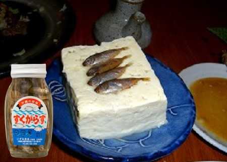 食べ方は島とうふの上にスクガラスを数匹乗せて食べるのが一般的です。
