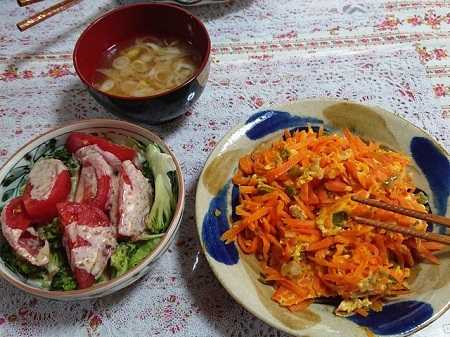 その他、味噌汁の具にもおでんにも、茹でたにんじんがサラダにブロッコリーと入っている料理もありました。万能食材です。