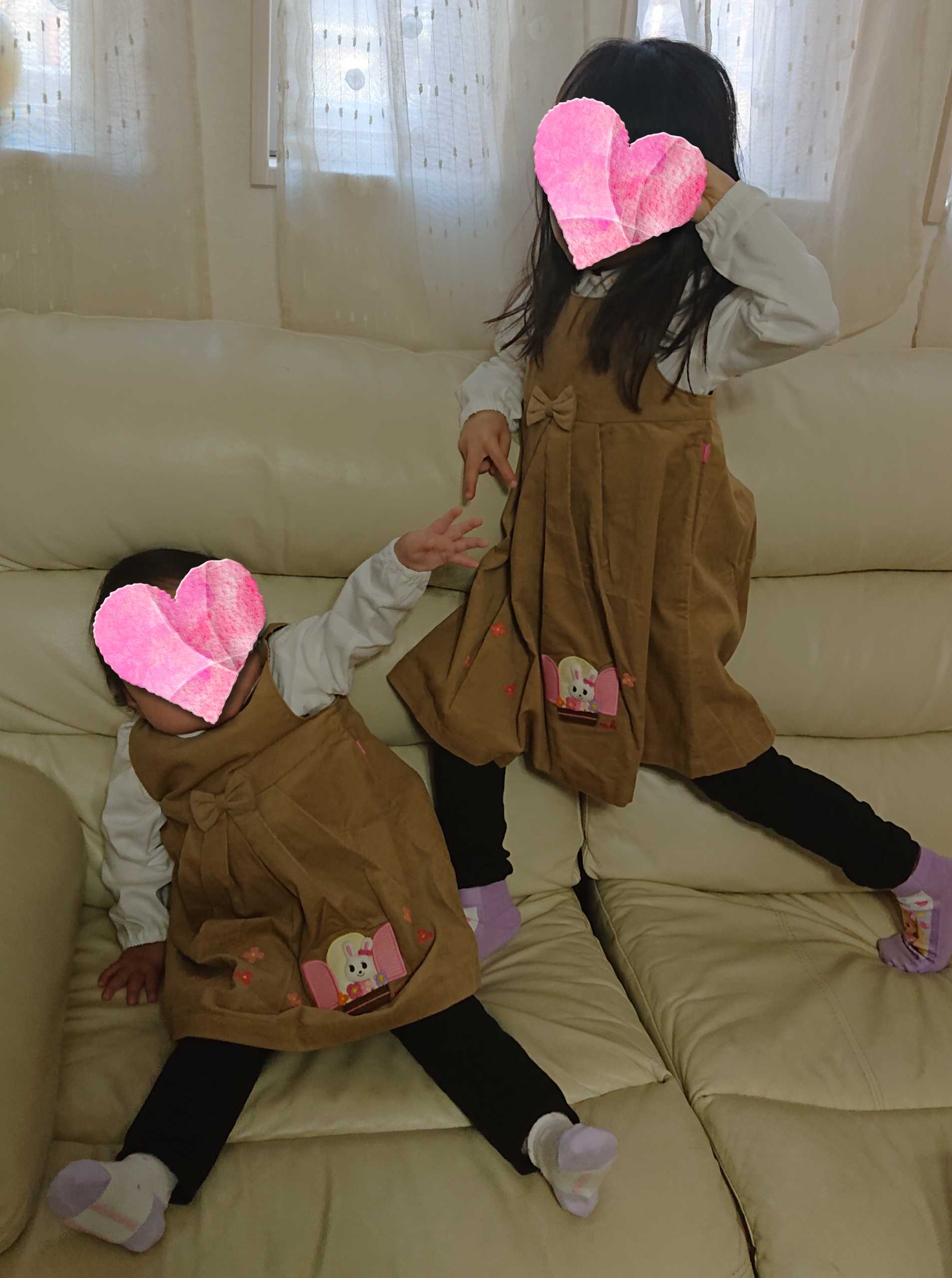 今のところ姉妹ズ二人とも、折り返しなしで伸ばして履いたらちょうど10分丈程度になるので履かせてみました😅
