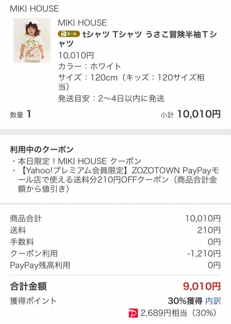 スパセ真っ最中ですが、ゾさんで本日ミキハウス1000円クーポン出てます!