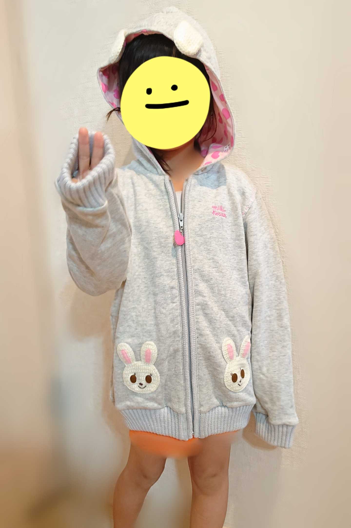幼稚園から帰宅後、園の体操服の上から羽織ってもらっているので、園のエンブレムやお名前が分からないよう前ファスナーは閉めさせてもらいました💦
