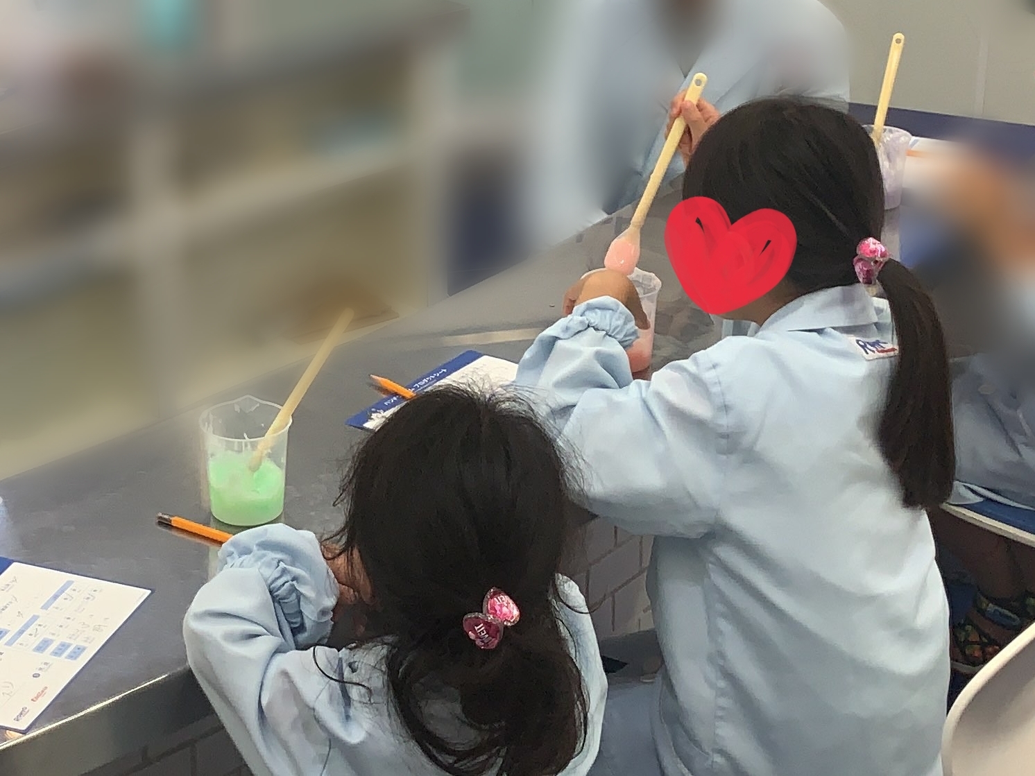 石けんが出来るまでの工程を勉強して、実際に材料混ぜて石けんを作っていきます。