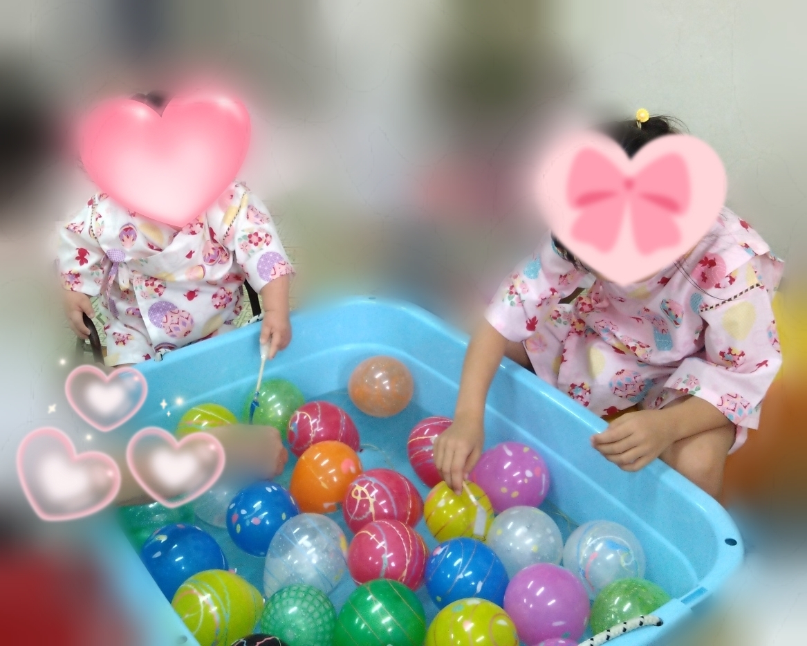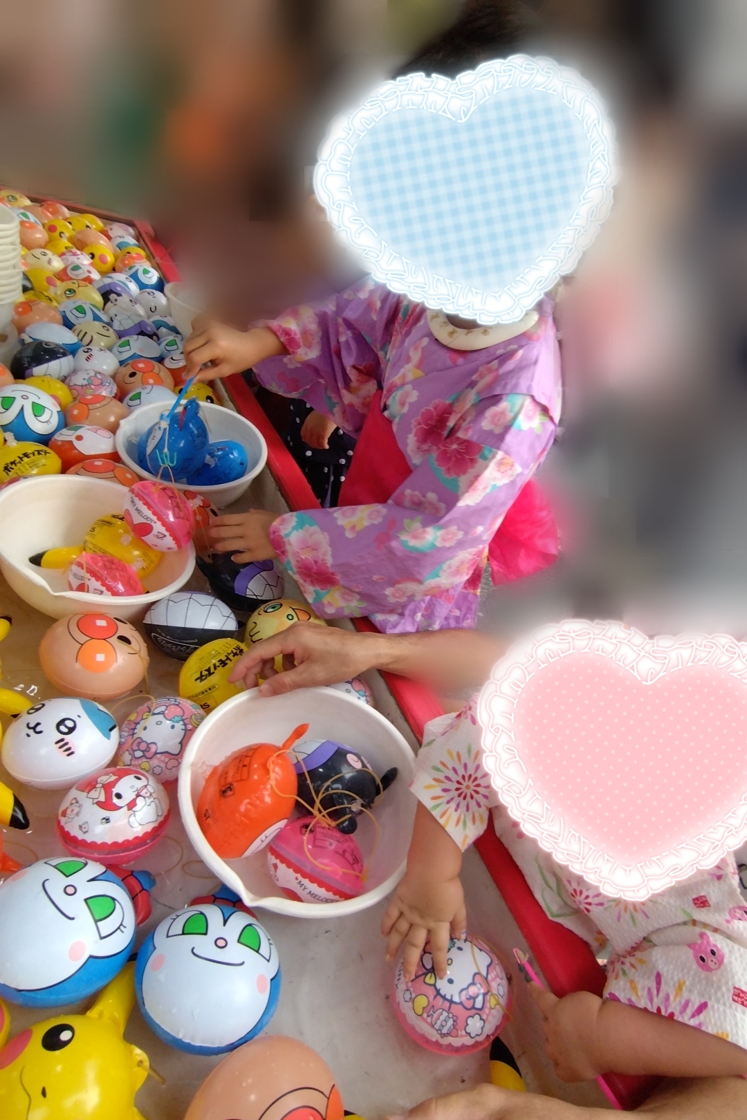 例えばヨーヨー釣りも、写真見てもらえば分かる通りヨーヨーがぎっしり埋まってて、上に乗っかって水に浸かってないものもたくさんあって。