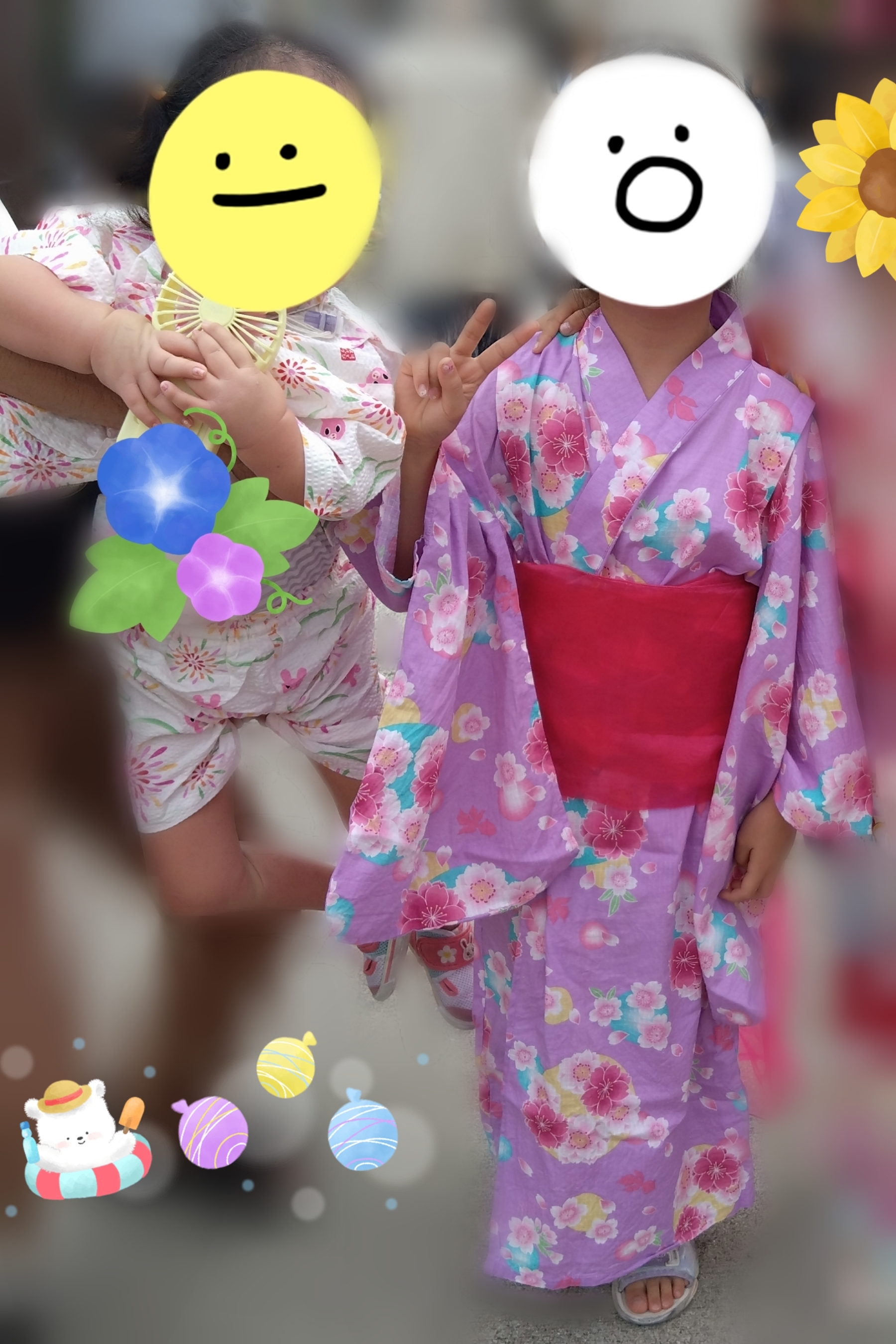 長女が学校のお友達と浴衣来て行く!と言い出したので、長女はお友達に寄せて浴衣を。