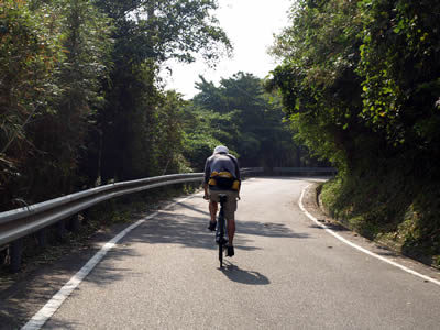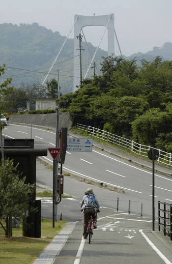 しまなみ海道、島めぐりサイクリング。本日は、今治から来島海峡大橋を渡り大島へ。体力も精神力も限りなくゼロに近いこの私が、無謀にも、亀老山ヒルクライムに挑戦してきました・・・。サイクリング取材のため、鬼の磯野テンチョに連れて行かれたのです。(被害妄想ぎみですがお許し下さい) 亀老山。(きろうさん) 今治市吉海町にあるお山です。 展望台までの距離3.7キロ 標高307.8m 平均勾配8%(号泣) さて、いよいよ無謀な挑戦のスタートです。橋を渡り、吉海に降りて少し走ると左手に「亀老山展望台コチラ」みたいな標識が出ています。そこからすでに坂道が始まるのですが、実はまだここは一般の道のようで、ずい分来た感があったにも関わらず、案内板には 「 亀老山入口まで500m 」って!!・・・まだ始まってもないんかいーー!?みたいなビックリからスタートし、本番の入口からのハンパない急勾配にいきなりへこみます。これ、角度45°くらいありませんか?(ありませんけど、そう見えた) 数百m進んだところで、早くも自らの限界を感じまして、自転車を降り、おして上がる作戦に変更。磯野テンチョの背中が遠ざかる。 さよ~なら~。 「とにかく自転車を降りるな、押すな、乗れ」と言われるも、無理。私、これ絶対無理!断固拒否し、自転車をおして走って駆け上がる、というサイクリストにはあるまじき暴挙に出る。しばらく自転車をおしてると、少し体力が回復してきたので、また乗る。で、限界が来たら、自転車を降りておす。の繰り返し。それでも後半はずいぶん乗りましたよ。(自慢できることではないけれど) どんどんきつくなる斜度。汗が滝のように流れ、髪の毛は岩ノリみたいになり、化粧は取れ見事にスッピンになり、ゼーゼーハーハー過去最大級の息切れ。死ぬ゛ーーーーー!!どこまで登っても終りがないように思えます。(これも被害妄想) とにかく次のコーナーを曲がれば頂上が見えるかと淡い希望を抱いては、見事に裏切られる・・・。こんなことが永久に続くかと思われました。テンチョが悪魔に見えました。もうダメだぁぁぁぁぁーーーと思った途端、一気に視界がひらけて、このパノラマビュー!! これが、亀老山ヒルクライムの醍醐味か、といまさらながら気づきました。いやーー、感動ですよ、感動。 そこからは一気にモチベーションが上がり、自転車をこぐ足も、軽く・・・はなりませんが、どうにかこうにか、頂上の展望台にたどり着きました。入口からだと、50分くらいでしょうか。ま、半分くらいは自転車おして上がってますけど。展望台もすごく素敵です。 建築家隈研吾氏デザインの、石でできたユニークなデザイン。地中に埋もれるような形で、周囲から「見えない展望台」だそうです。自然景観を損なわないように設計されているんですね。ここからの眺め、最高です。あ、この柵にジャラジャラとかかっている南京錠たちはここにカップルで来て鍵をかけたら幸せになれる、みたいなおとぎ話を信じている方々がかけられた魔法の鍵のもよう。「たかし&まみ 1か月記念」とか「ユージLOVE ずっと一緒だよ」とかいうイラッとするメッセージが鍵に書かれていました・・・。この南京錠はかなり撤去したいですけれど、ここからの景色は素直素晴らしいです。頑張って自分の足でのぼったご褒美のように思えます。 展望デッキで、今治のサンライズ糸山で見かけた男性を発見。 レンタサイクルで自転車でこの山を登ってきたそうです。背中の大汗が、彼のガンバリを物語っています・・・。話を聞いてみると、岩手県から旅行で来られているそうで、今治から、尾道までサイクリングされるとのこと。でも、今治を出発して早々にここを登るとは、すごい根性です。しかもレンタサイクルで。おもいっきり普段着で。無事に尾道までたどり着けたでしょうか・・・?しまなみ海道ぜひ楽しんでくださいねー。旅の無事を祈りつつ笑顔でお別れし、私は、売店で「玉藻塩アイス」を。 生き返りました~。 売店のおじさんありがとう!!亀老山、ありがとう!!駐車場にてしばし休憩すると、あとは一気に山を下るだけ。上りはあんなに死ぬ思いだったのに、下りは5分くらい。なんかあっけないものです。が、今日はものすごい「やり切った感」があります。健脚に自信のある方はぜひ。あ、まあ、自信なんてなくても、私でも登れるんですから大丈夫ですよ。無理せずおして上がればいいんです(笑) この絶景をぜひその目で!! Posted by 曽我