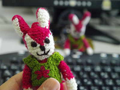 磯野テンチョの、思い出せない俳優話は、一向に進展していません。すいません。皆さんいろいろと思い当たる人を教えてくれるのですが、どれも該当しないようです・・・。本人の記憶が戻るまでしばしお待ち下さい。 えー、話はすっかり変わりますが、もう2~3ケ月前だったと思うのですけれど、うちの会社の純ちゃんが、ある"編みぐるみ"の写真を見せてくれたことがありました。 ←その時のケータイ画像それは、純ちゃんのお母さんがどこかでお楽しみ袋を買ってその中に入っていたとかいう編みぐるみで、その完成度の低さ(失礼)とブサイク度(かなり失礼)が笑えて「こんなのあるんよ~」という笑い話として「このピンクの何ーーー?? まさかウサギ~~??? 」ギャハハ。と大ウケしてその話は終わったのですが・・・。 そして、月日は流れ・・・、もう、その話もすっかり忘れかけていた頃。一昨日、うちの母親が、「西予市」というところに遊びに行っていたらしく、私にお土産を買ってきてくれていました。地元の手作り市場みたいなところで見つけた、と言って、母が選んだ、これを。 !! 母セレクト、まさかの符合。 純ちゃん母 と 曽我母 が起こした奇跡。よく見ると、純ちゃんちのと、服(ベスト)まで一緒。 それにしても ・・・コレ、誰よ??一体、ナニモノ?? ウサギじゃないよね・・・?ミッ○ーマウス説もあるんだけど色違うし。もしかしてどこかで流行ってるんですか・・・? Posted by 曽我