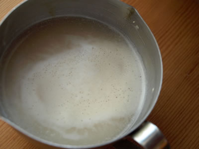 週末、時間があったらパンを焼いています。・・・あんまり美味しくはないんですれども。子供のころ、家の両隣がパン屋でして、その影響かパン好きが高じて、大学卒業後はパンメーカーに就職してしまったほどのパン好きなわけですが、自分で作ると、ぶっちゃけ、たいして美味しくないんですね。まあ、売るわけでもないし、自分一人が食べるだけなので、(家族も怪しがって食べたがらない)別にそれでもいいんですけれど、今日はすごいレシピを発見してしまいましたので、ちょいとご紹介します。今まで、パンってゆーのは、こねこね して バンバン打ちつけて汗が滴り落ちるほど、こねてこねてこねあげて、焼くっていう方針で私はやってきましたが、今回のは、” NO MORE こね ” 超ラクチンです。題して「こんな簡単でええんデスカパン」です。ちなみに、私がパン会社で新人教育時に習った「パン菓子の科学」にはこんな方法はどこにもなかったですし、プロの方から見れば、ナンダヨソレ?みたいな作り方かもしれませんので、どうかその点ご了承下さい。まず、最初に、ぬるま湯1/2カップの中に、砂糖小さじ1/2を溶かしドライイースト小さじ1を加えておきます。 室温でしばらく放置しとくと、なんかフツフツと下からなんかが湧いてきます。(発酵しているようです)これを(A)としますね。その間に、大きめのボールに強力粉3カップと塩小さじ2を混ぜて真ん中へんにくぼみを作って、オリーブオイル大さじ2とぬるま湯1カップを静かに投入。ここに、最初に発酵させた(A)を入れて、混ぜます。 べっちゃべちゃです。今まで散々パンを焼いてきましたが、かつてないほどべちゃべちゃです。でも気にしないで下さい。なんとか粉っぽさがなくなるくらいに混ぜたら、ちょっと、気持ち「まとめる」感じで(まとまらないので、気持ち程度でいいと思います)ラップをして、40℃で40分ほど発酵させます。 キタナイですけど、ドント ウォーリーです。私はオーブンの発酵機能(40℃)を使ってますが、40℃になれば、コタツでも湯銭でもアンカでもなんでもOKと思います。 コレが、40分発酵した後です。若干大きくなってる気もしますが、あんまり変わらない気もします。相変わらず、べちゃべちゃです。これにちょっとだけ打ち粉をふって、このボールの中で2~3分まぜまぜします。手にくっつきまくって嫌気がさしますが、気にせずまぜましょう。手にべたべたくっつきますが、打ち粉はあまりしすぎない方がいいみたいです。それを、天板にべろ~んと、乗せます。(流し込むくらいの感じ) この、非常に怪しい状態で、余熱はなしで、オーブンに入れて180~190℃で40~45分焼きます。余熱なしってのがポイントらしいです。何故だかわかりませんけれど。うちのオーブンは、上火が強いのかすっごい焦げるので、焦げはじめたらアルミホイルをかぶせて防御しています。たぶん普通のオーブンは、アルミホイル作戦じゃなくてもそんなに焦げないと思うんですが、焦げそうだったら、アルミホイルで上を覆って下さい。 はい、焼けました。プクーーーっとふくれて、まるで枕です。この状態でも、かなり不安なんですが、切ってみると、これがビックリ! ちゃんと、できてるーーーーー!!しかも、バケットみたいに、ポコポコと穴が空いてて、しっとりモチモチ!!簡単で楽勝ですよーー。しかも、うーまーいー。なんで、この方法でできるのかは私には謎です。焼く前も、焼いてる間も、すっごい怪しい雰囲気なんですが、なんかしらんけど、美味しくできました。興味のある方はぜひお試しください。 Posted by 曽我