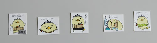 あの、「拭男」の「ホリグチさん」から、個展の案内状をいただいておりまして、ずっとこの日を楽しみにしていました。今日から松山大街道の雑貨屋さんのギャラリーで、「モーレツ伝」という個展をされています。さっそく行ってきました!こじんまりとしたギャラリースペースに 拭男がこれでもかーーーーっていうくらい並んでいます!! 見渡す限り 拭男です。 壮観です。 圧巻です。 今回、初めて 「でかい拭男」を見ました。1mくらいあります・・・(--;) でかくなるとさらにキモさが増しますね・・・。抱き枕とかにしたら・・・どうでしょう?眠れませんかね?他にも、いろいろ 石川リョウくん?? すごすぎる、顔ストラップ。 男子鉛筆・・・ホリグチさんの頭の中はどうなってるんでしょうか?かなり、モーレツです。私はすでに拭男4人とランデブーなので今回は、顔だけの拭男と鉛筆と顔ストラップを購入。結局、拭男がさらに増えたけど。お近くの皆様、拭男に会いにぜひおでかけくださーい!! モーレツ伝 by「ホリグチさん」 2009.10.4(日)~10.11(日) ※水曜日はお休みのようです。 12時~19時 場所: 粒子 -TSUBU- (coudre内) 大街道シネマサンシャインの向かいくらいにある 高木ビルの2Fです。ホリグチさん、ありがとうございましたm(__)mまたお会いしましょう~~! Posted by 曽我