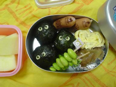 今日のお弁当はトトロにでてくる 『まっくろくろすけ』 でした。 昨日トトロ大好きなお友達の家にお邪魔してて トトロに囲まれて数時間過ごしてきた影響です。 でもトトロはうまく作れる自信がなかったので 簡単にできそうなまっくろくろすけにしました。 が!! 次男、熱がありました。 微熱なんだけどずっと咳してるし 結局幼稚園をお休み。 キャラ弁のおすそ分けにありつけて三男だけが とても喜んだ一日でした。