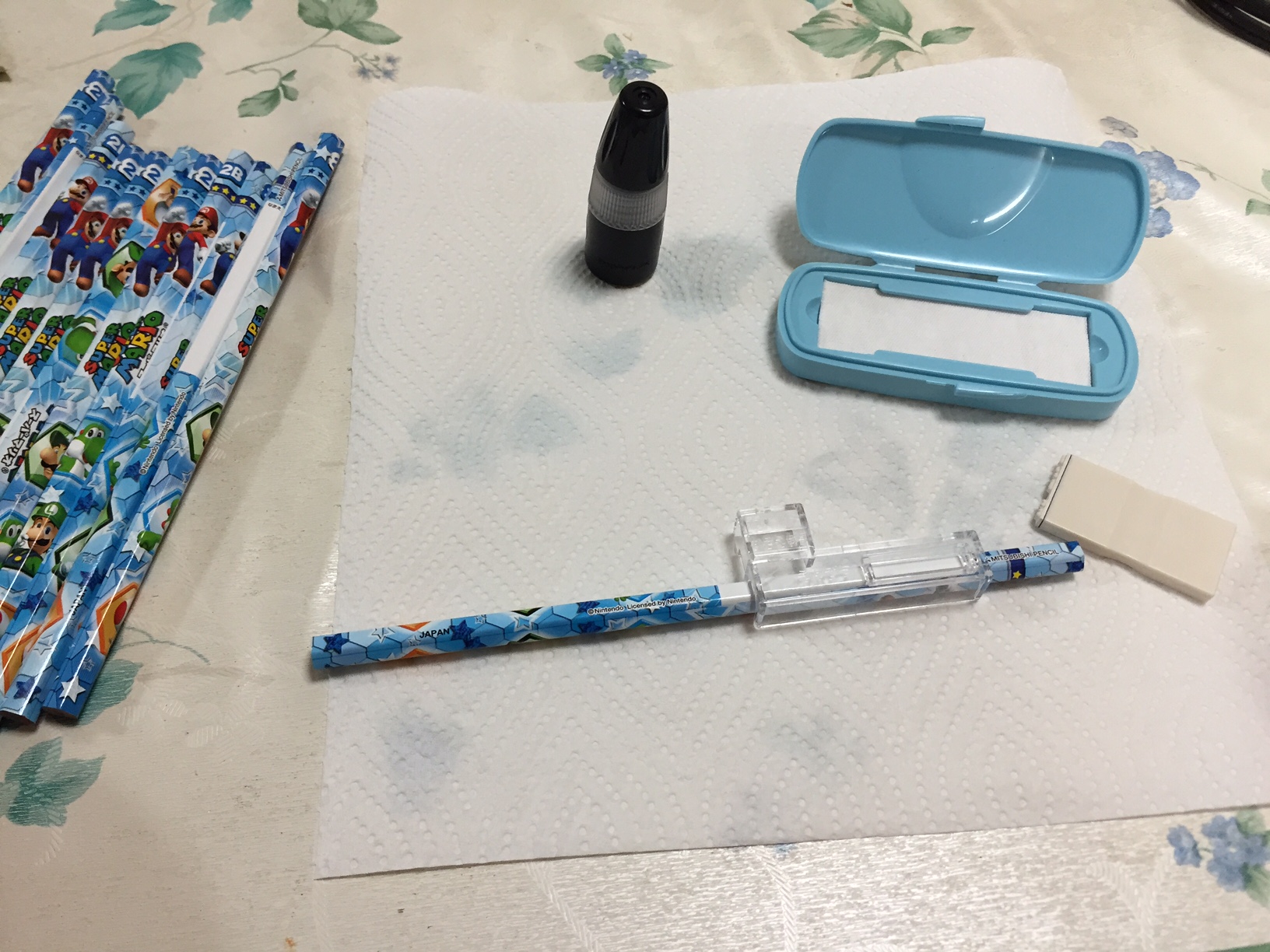 楽天ブログで実施中の『おなまえスタンプ入学準備BOX』サンプリングモニター企画に参加しておなまえスタンプを試してみました!購入はこちら今回はえんぴつに名入れしてみました。鉛筆はコロコロ転がってこれまではとても名入れがやりにくかったのですがこのスタンプには「えんぴつガイド」なるものが付属!えんぴつを押さえてくれてスタンプを押す場所がちゃんとくりぬいてあって失敗しらずでスタンプができました。私がやっているのを見て子供もやらせてほしいと言いましたが小さな手でも上手にスタンプできるくらいえんぴつガイド、優秀でした!いい感じで名入れができました。※名前特定を防ぐため写真を加工してのお披露目でスイマセン… でもすごくきれいにスタンプできてます!引き続きクレパスなどにもスタンプしていきたいです!