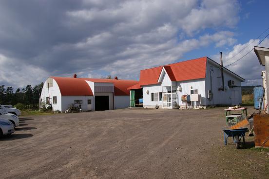 楠目牧場の他の牧場にはない特徴は牛乳製造プラントを保有している点にある。右側の建物がそれだ。大企業の大量生産用の設備を脳裏にすり込まれている現代人には、ずいぶんと小規模で頼りなく映るかも知れない。楠目さんのお話を伺った後の時点では、この規模の設備こそ、ここオホーツクの地域には、もっとも必要とされるものなのだと、見る目の光が穏やかに変わった。楠目さんは、牧場の経営はしてきても、牛乳製造プラントの運営と管理の経験はなかった。当初は、設備企業の技術者の指導が受けられたとしても、その後の多様な問題解決には、ずいぶんと心細かったのではないか。この点について、当時、開学したばかりの東農大食品科学科の乳業メーカ出身のH教授から、丁寧な指導を受けたという。もちろん、楠目牧場からは、研究資料の名目で、絞りたての生乳を提供してきたが...。
